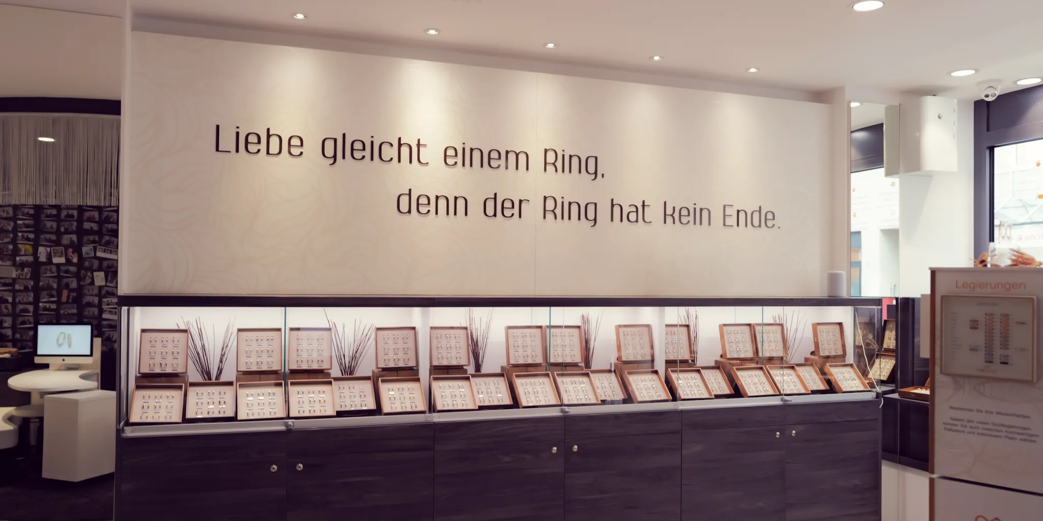 Bei uns wird der Kauf eurer Ringe zu einem besonderen Moment, den ihr in Erinnerung behalten werdet. Unsere Trauringlounge in Böblingen ist mit viel Liebe eingerichtet und lädt euch ein, in entspannter und stilvoller Atmosphäre die Ringe für euer Leben zu entdecken.