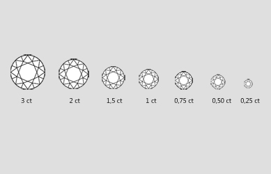 Als „Carat“ bezeichnet man die Gewichtseinheit des Diamanten. Der Name dieser Einheit leitet sich von der arabischen bzw. griechischen Bezeichnung für die Samen des Johannisbrotbaums (lat. ceratonia siliqua) ab. Diese wurden früher als Gewichte verwendet, da sie sehr gleichmäßig groß sind. Ein metrisches Karat entspricht exakt 0,2 Gramm. Heutzutage wird „Carat“ für die Annahme der Steingröße verwendet. Da ist so nicht ganz richtig, da die Steingröße von den geschliffenen Steinproportionen abhängt.