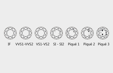 „Clarity“ – abhängig von Einschlüssen im Diamanten wird die Reinheit bewertet. Mit geübtem Auge und einer 10-fachen Vergrößerung wird nach Einschlüssen im Diamanten gesucht und der Reinheitswert bestimmt. Einschlüsse im Diamanten können z.B. ungepresster Kohlenstoff, Wasser oder Luft sein. Die erhaltenen Einschlüsse hindern den Diamanten bei der Reflektion, da sie das eintretende Licht in ungewollte Richtungen leitet. Einschlüsse in Diamanten mit den Reinheiten von IF,VVS und VS sind dabei so klein das sie nur unter zehnfacher Vergrößerung zu sehen sind.
