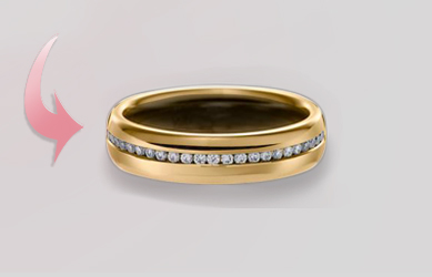 Einem klassichen Trauring wird durch eine Fuge seine eigene verspielte Note gegeben. Gerade Fugen sowie auch Fugen in einer Wellen- oder Saturnform können mit Hilfe des Konigurators frei auf dem Trauring positioniert werden. In Kombination mit in unserer Filiale vorhandenen Musterringen kann jede Art von Fuge genau von Ihnen betrachtet werden, sodass Sie sich Ihre Eheringe perfekt vorstellen können.