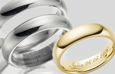 Einen besonderen Ausdruck Ihrer Liebe kann die im Trauring gewählte Gravur sein. Diese kann wahlweise mit Ihrer Handschrift oder mit einer standart Schriftart in den Ring graviert werden. Auch aufwendigere Gravuren wie teile des Fingerabdruckes oder eigens angefertigte Zeichnungen können graviert werden. Alle Arten von Gravuren werden per Laser in den Ring graviert. Vorteil im Vergleich zu früher angewendeten Diamantgravur ist die höhere Langlebigkeit sowie die bessere Lesbarkeit.