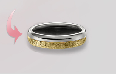 Je nach Kundenwunsch können dem Trauring unterschiedliche Oberflächen gegeben werden. Grundvoraussetzung hierfür ist eine Fuge welche diese durch eine klare Kante trennt. Am beliebtesten ist die klassiche Kombination längsmatt und poliert, doch auch weitere matte Oberflächen wie eismatt, sandmatt oder quermatt sind möglich. Für verspieltere Optiken gibt es angeschmorte oder gehämmerte Oberflächen.