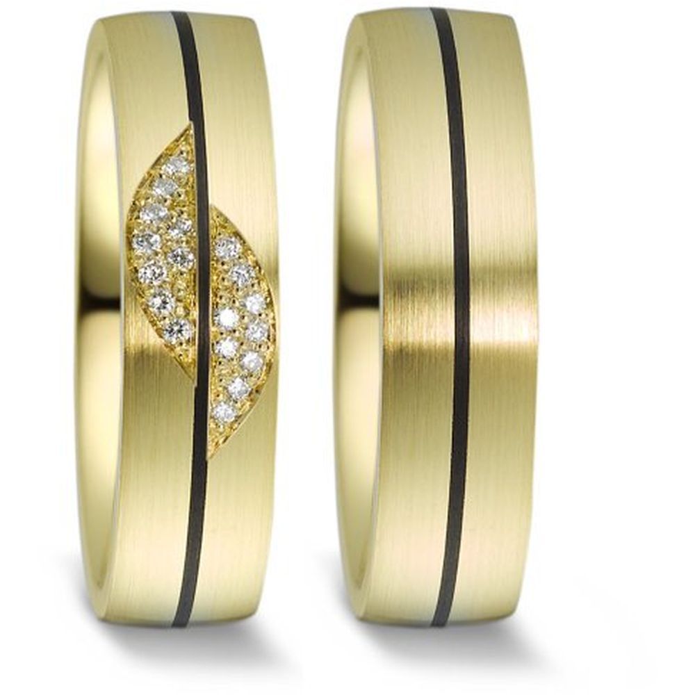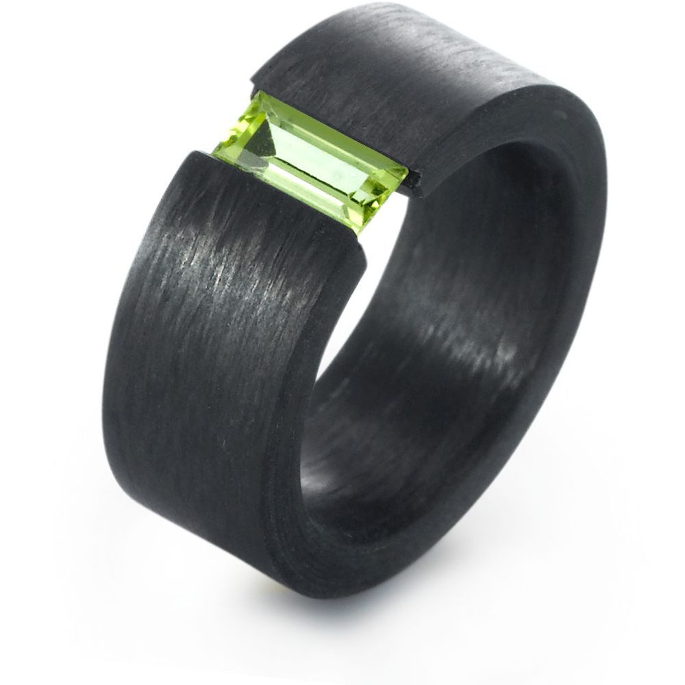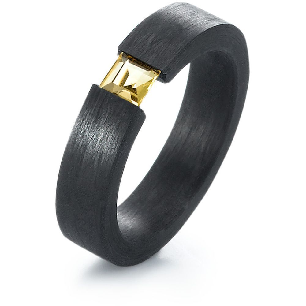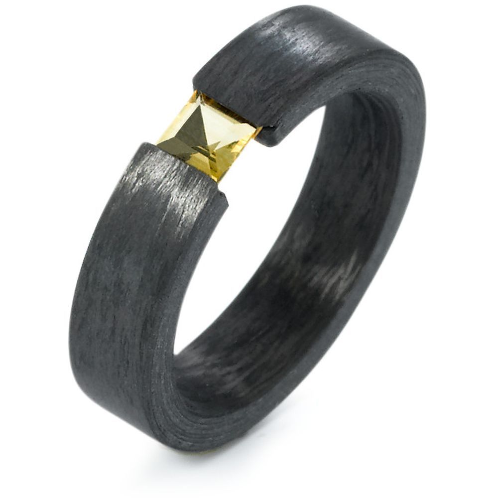 Carbon als Hightechwerkstoff begeistert durch seine absolute Stabilität und Beständigkeit gegen Chemikalien und Temperaturschwankungen. Zusätzlich gibt es beim Tragen kaum Abnutzungserscheinungen und die mit Carbon gefertigten Trauringe sind je nach Modell leichter als Ringe, die komplett aus einem Edelmetall gefertigt sind. Kombiniert mit farblich abgestimmten Legierungen wie Roségold, Rotgold, Palladium oder Platin und wunderschön strahlenden Brillanten, bezaubern die Modelle die Paare, die besondere Trauringe möchten.