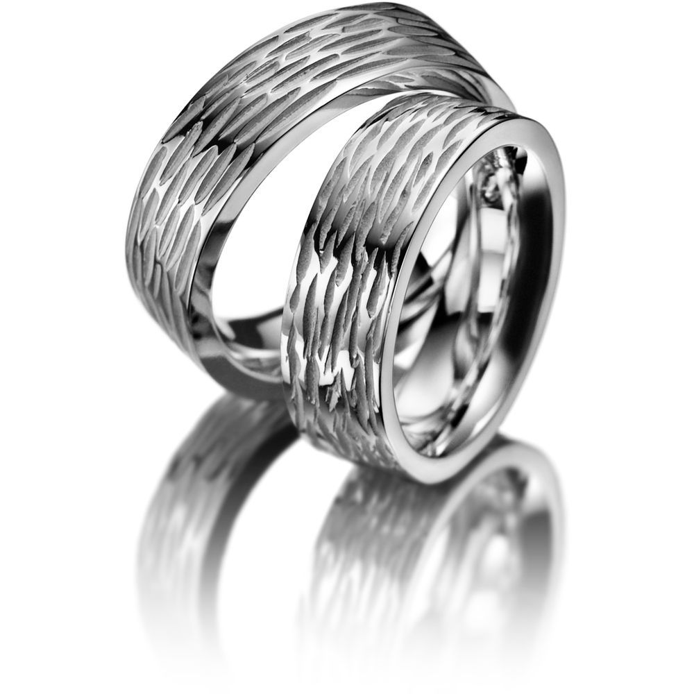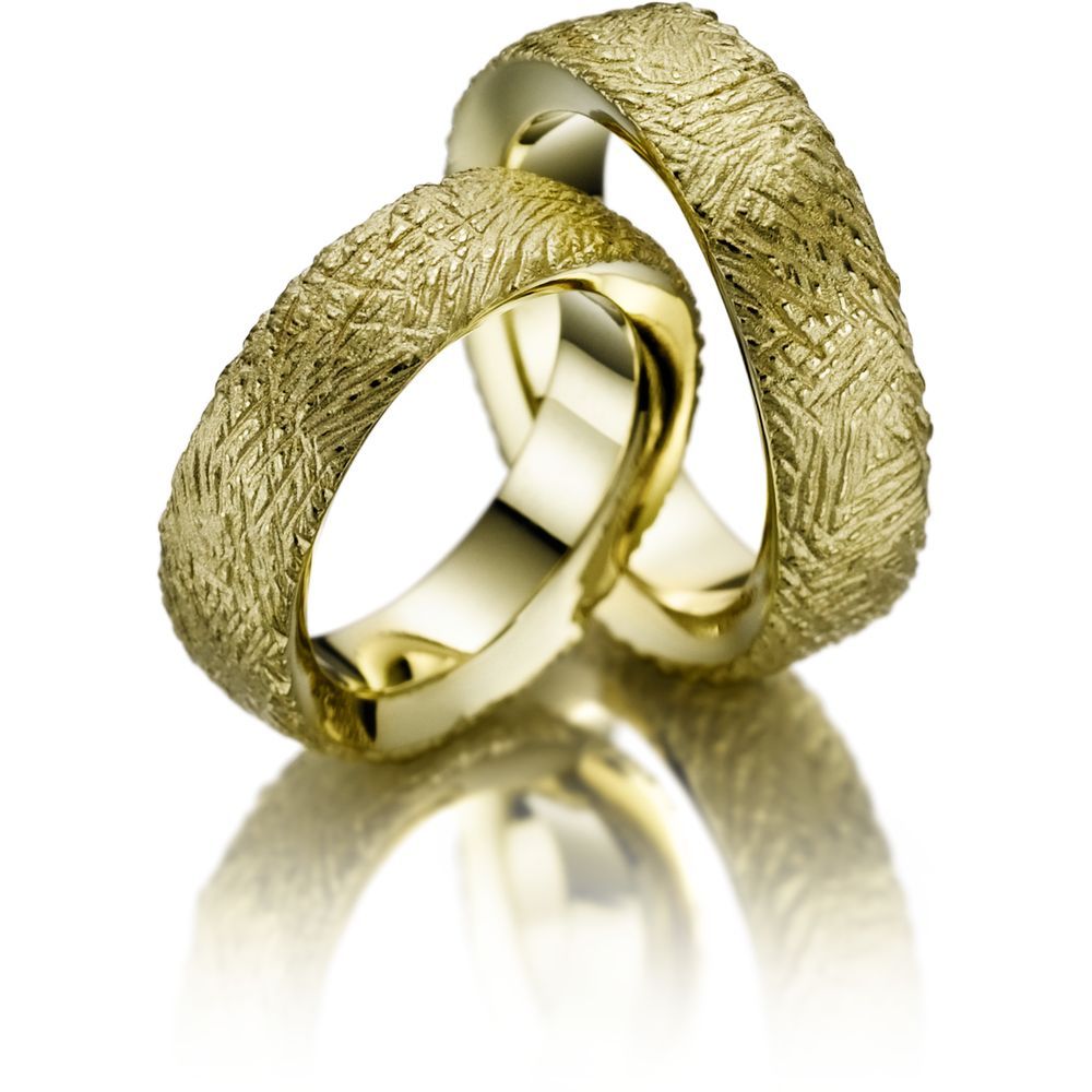 Trauringe mit kreativen Oberflächen haben eine ganz besondere Charakteristik. Durch die Oberflächenbehandlung bekommt der Trauring sein besonderes Finish.