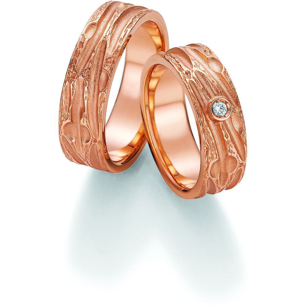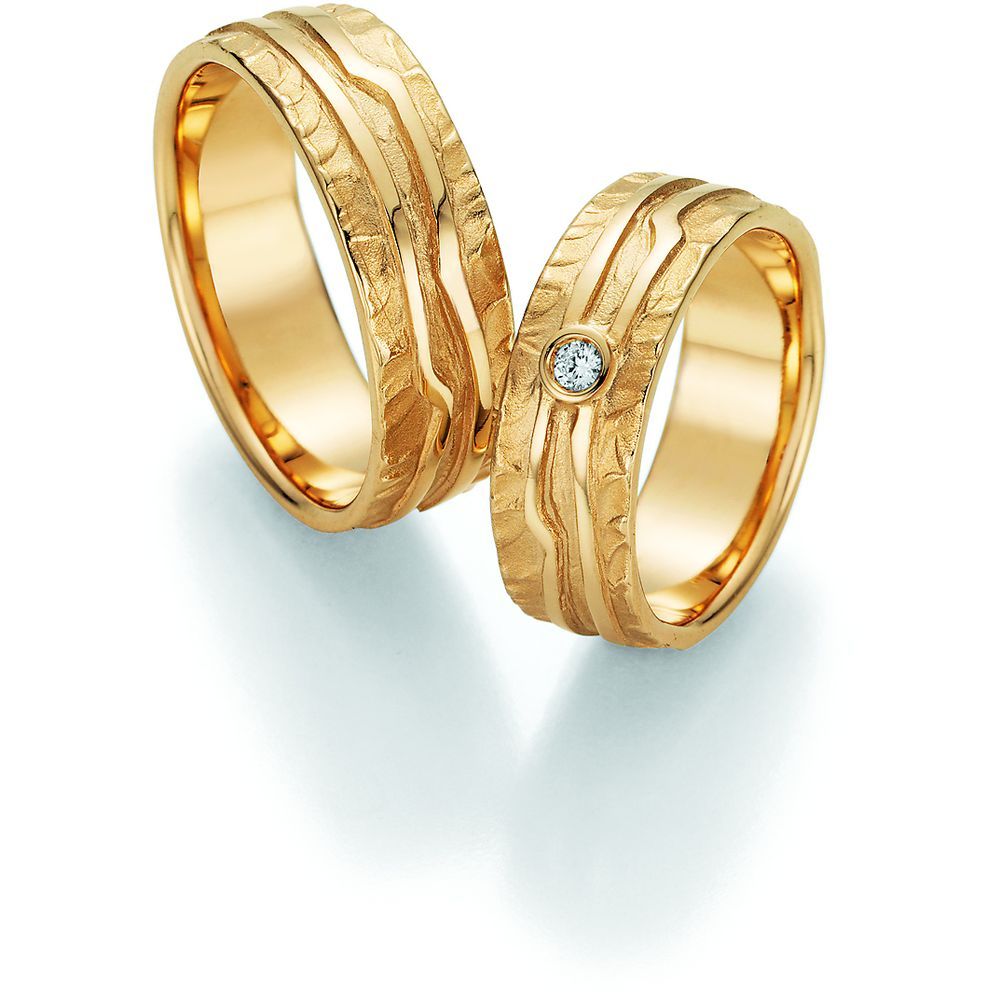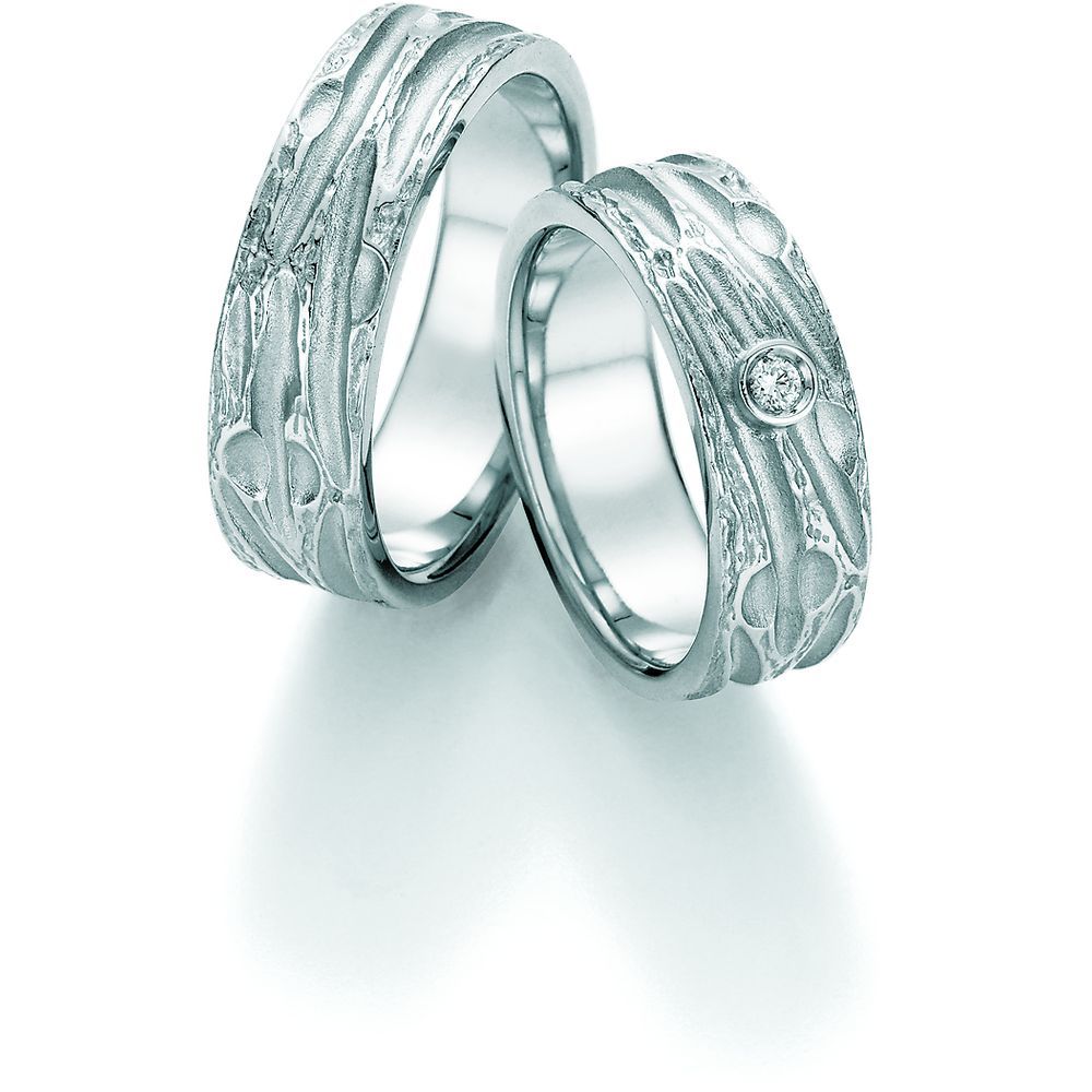 Trauringe mit kreativen Oberflächen haben eine ganz besondere Charakteristik. Durch die Oberflächenbehandlung bekommt der Trauring sein besonderes Finish.