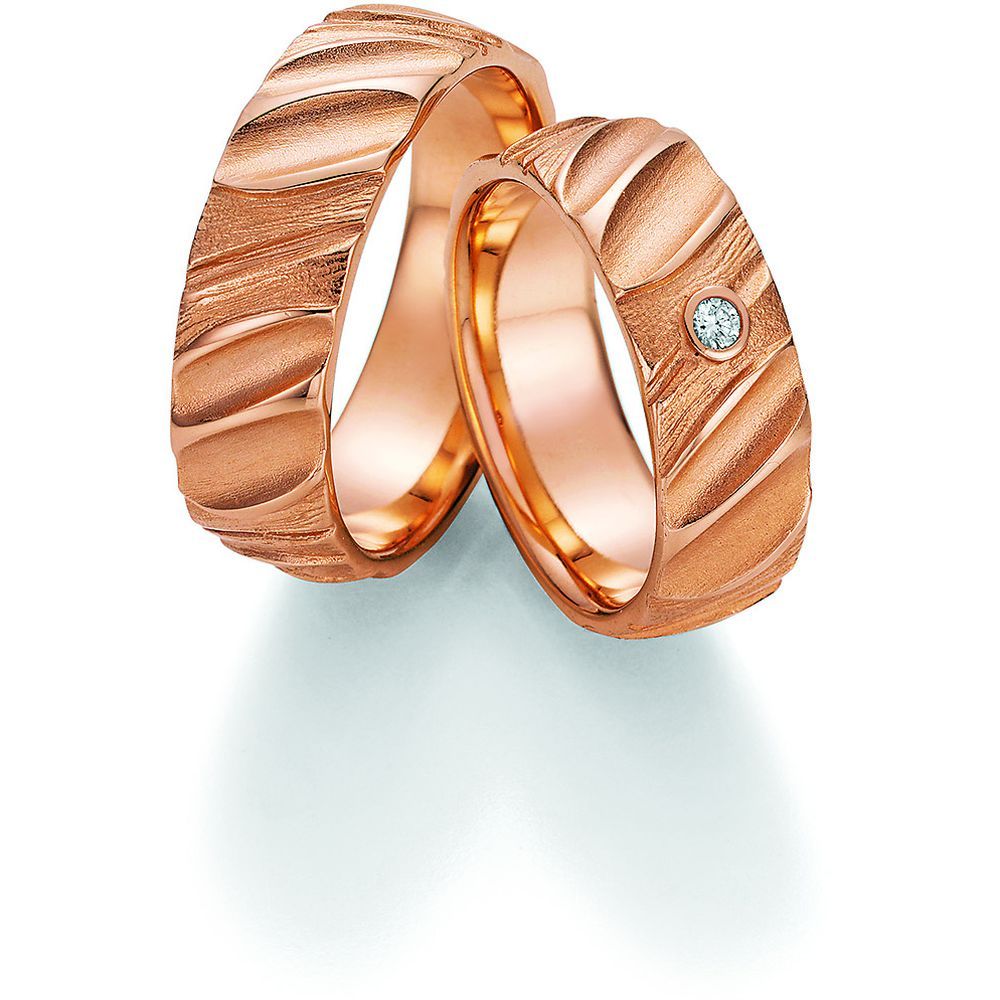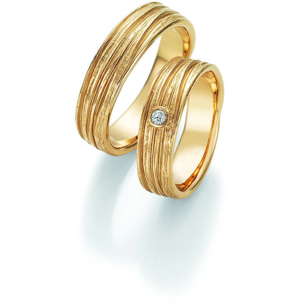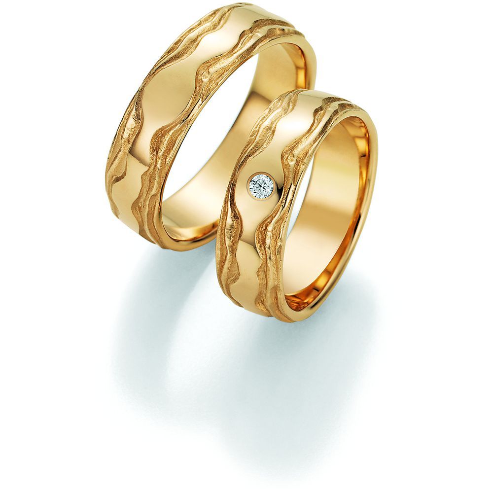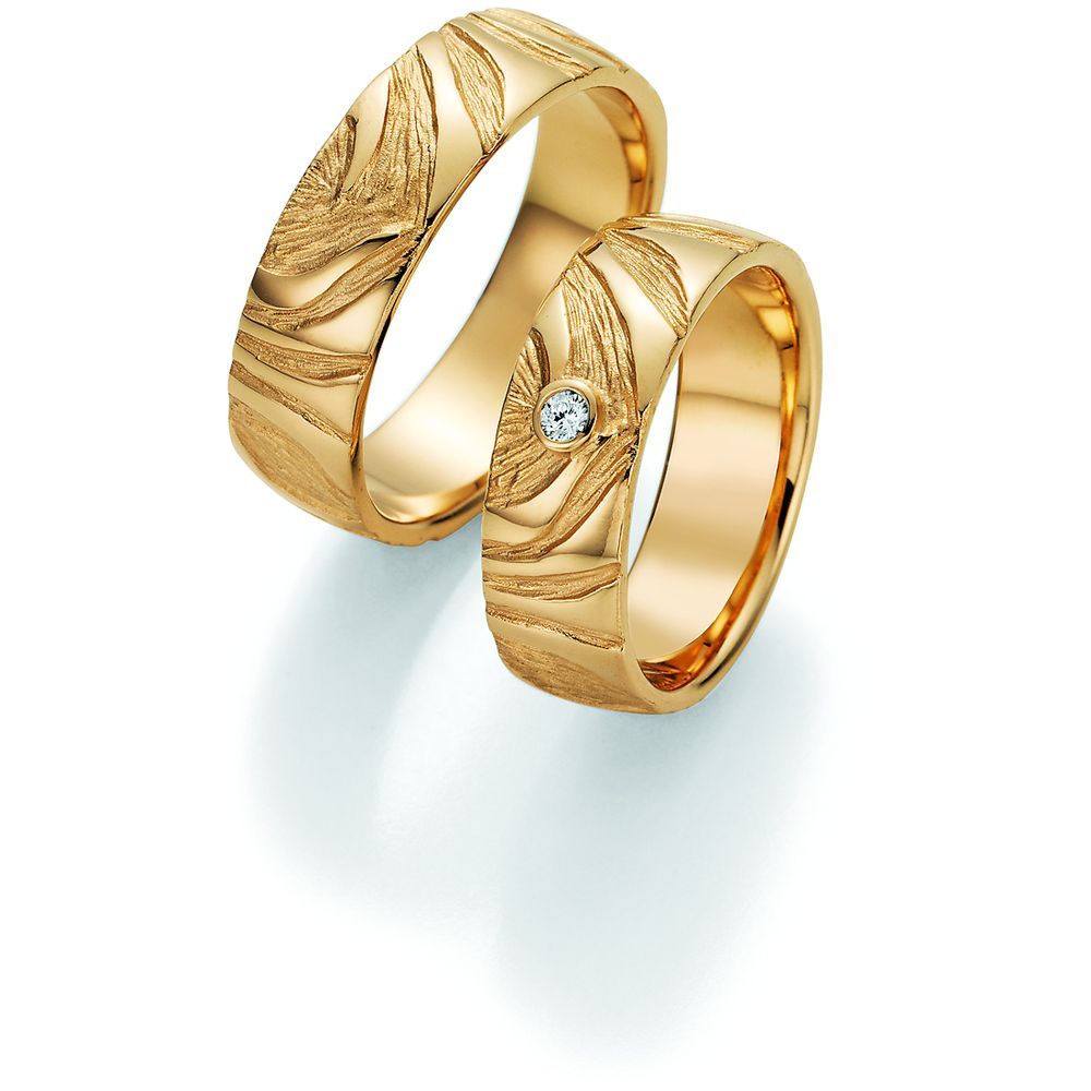 Trauringe mit kreativen Oberflächen haben eine ganz besondere Charakteristik. Durch die Oberflächenbehandlung bekommt der Trauring sein besonderes Finish.