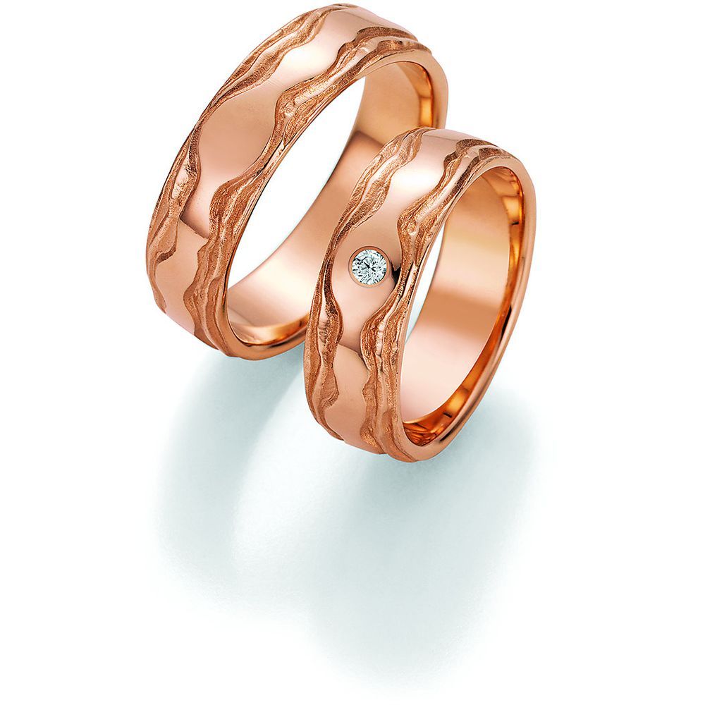 Trauringe mit kreativen Oberflächen sind auch möglich in folgenden Materialien: Weissgold, Graugold, Gelbgold, Rotgold, Roségold, Platin und Palladium.