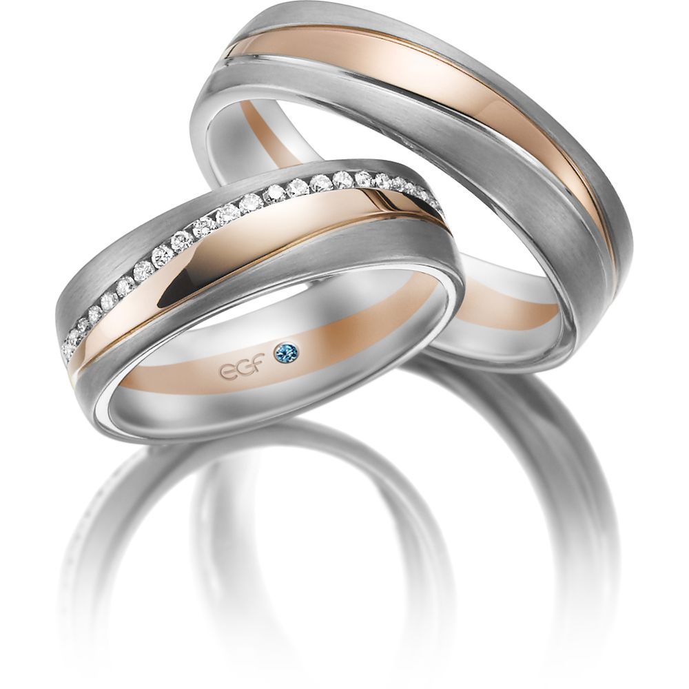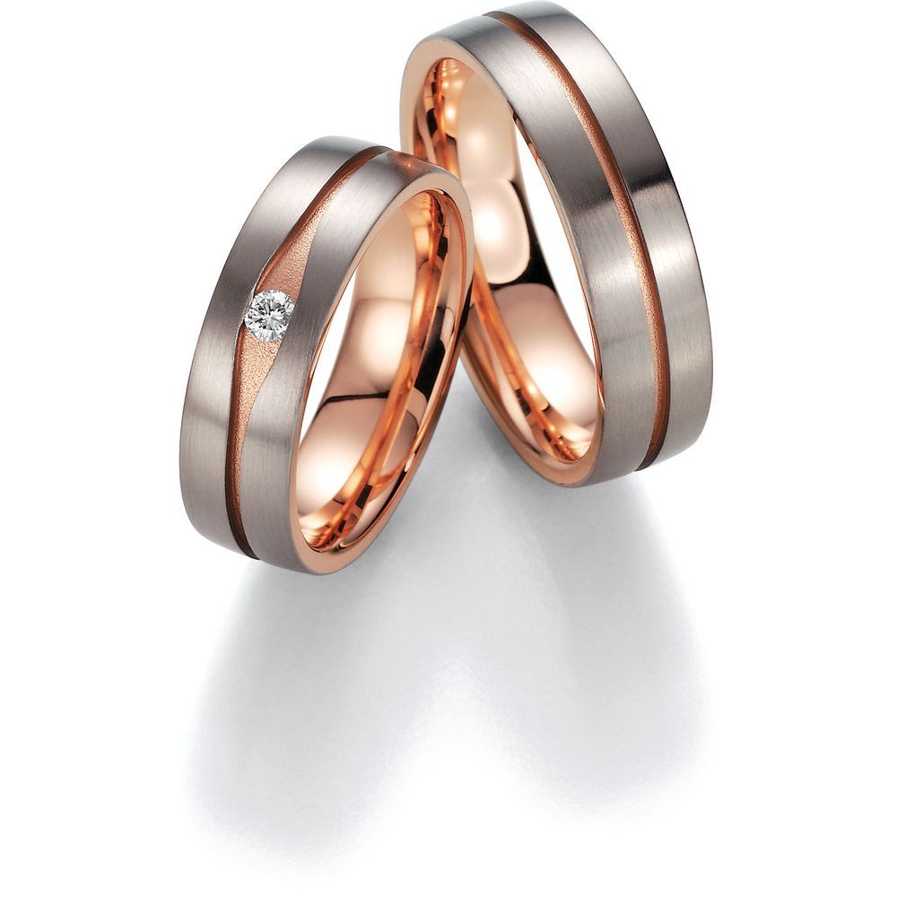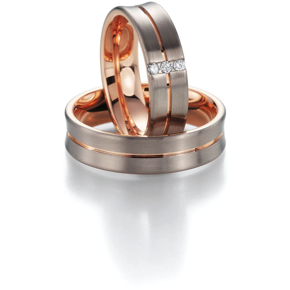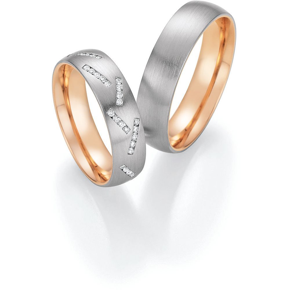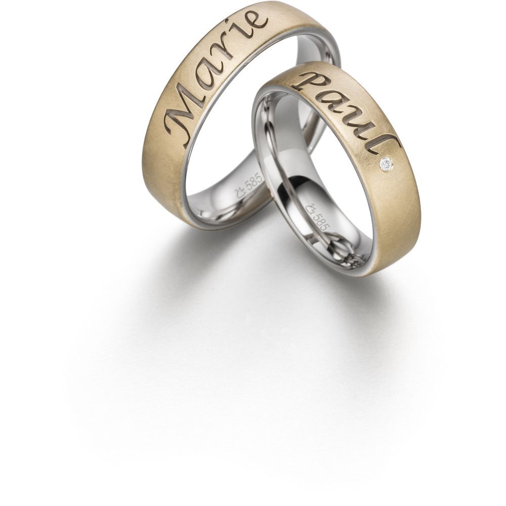 Kombinieren Sie verschiedene Materialien, in verschiedenen Farben, und kreieren Sie einen einzigartigen Trauring. Möglich ist alles was gefällt!