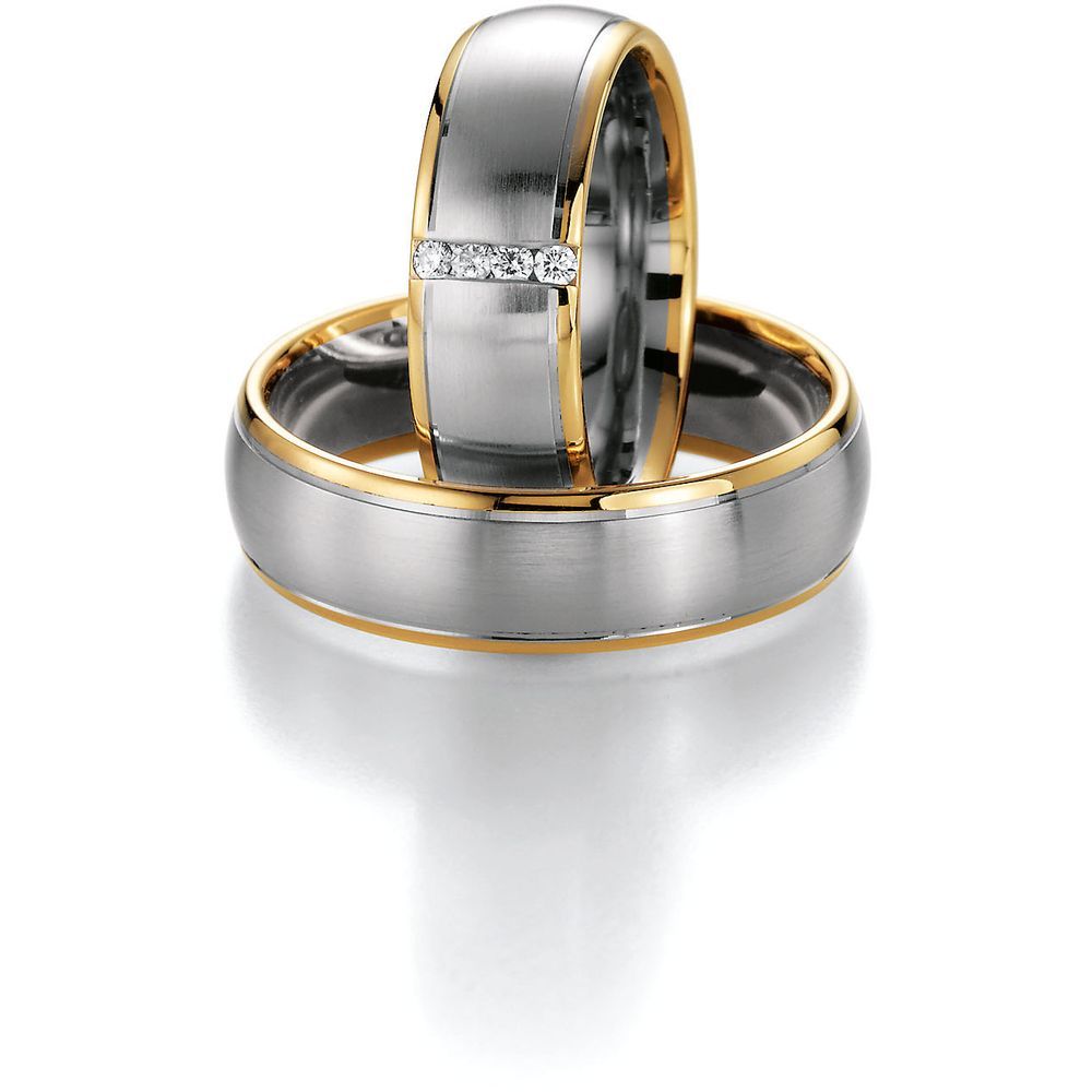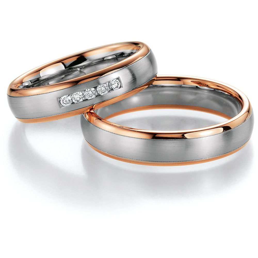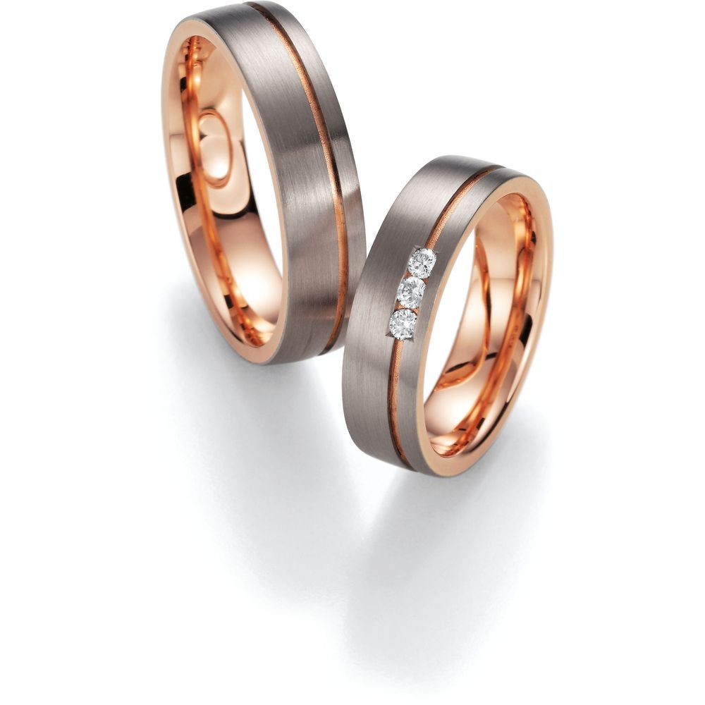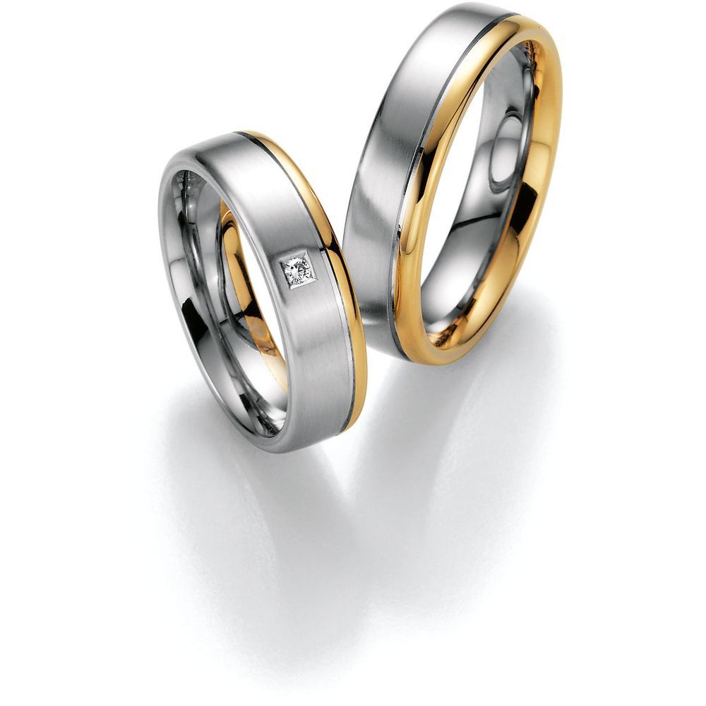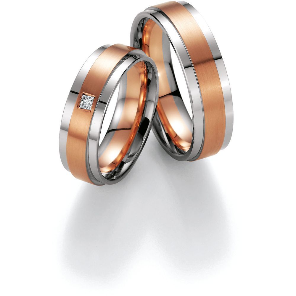 Kombinieren Sie verschiedene Materialien, in verschiedenen Farben, und kreieren Sie einen einzigartigen Trauring. Möglich ist alles was gefällt!