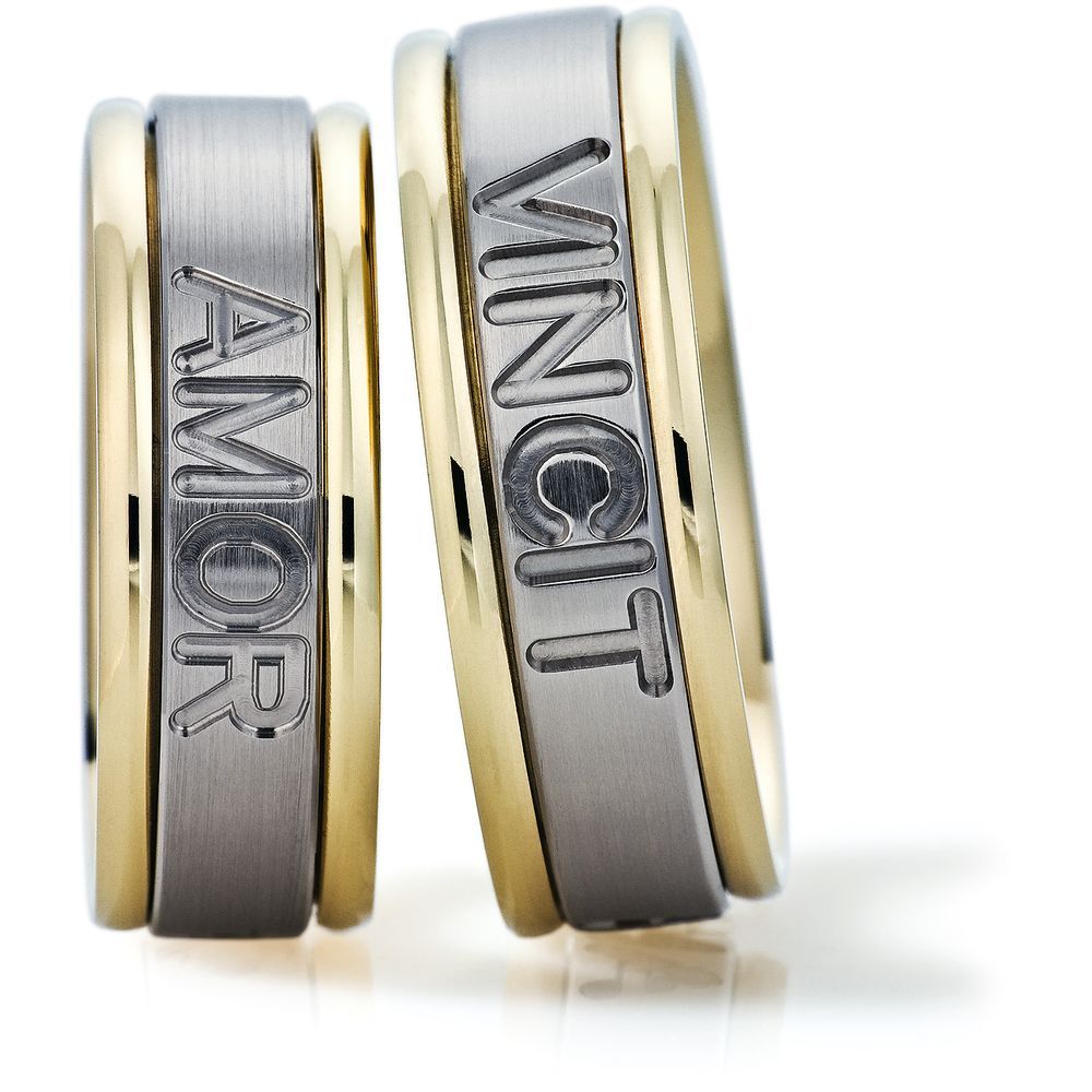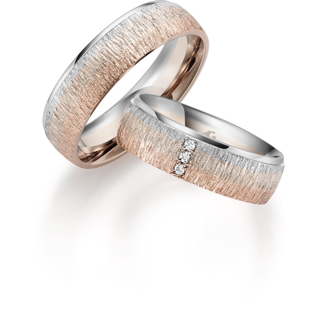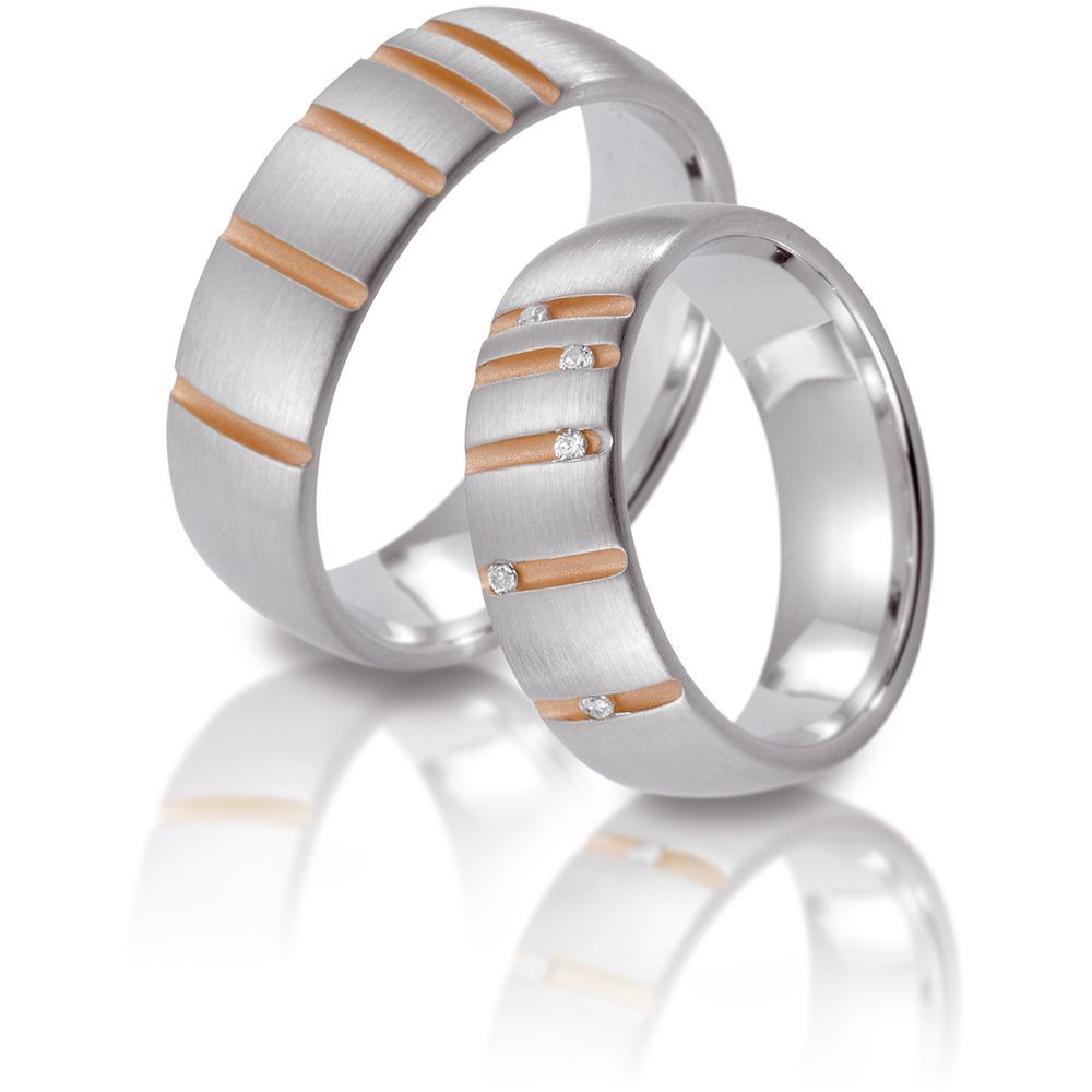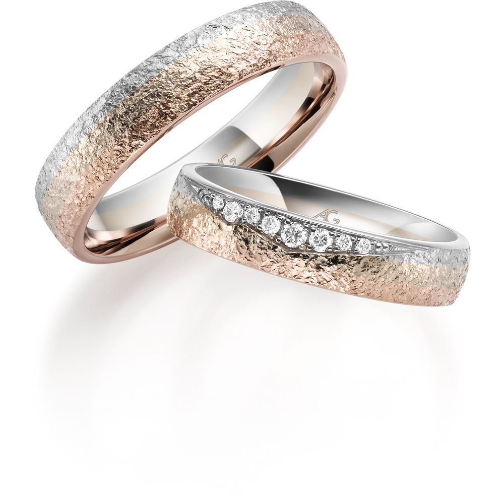 Kombinieren Sie verschiedene Materialien, in verschiedenen Farben, und kreieren Sie einen einzigartigen Trauring. Möglich ist alles was gefällt!