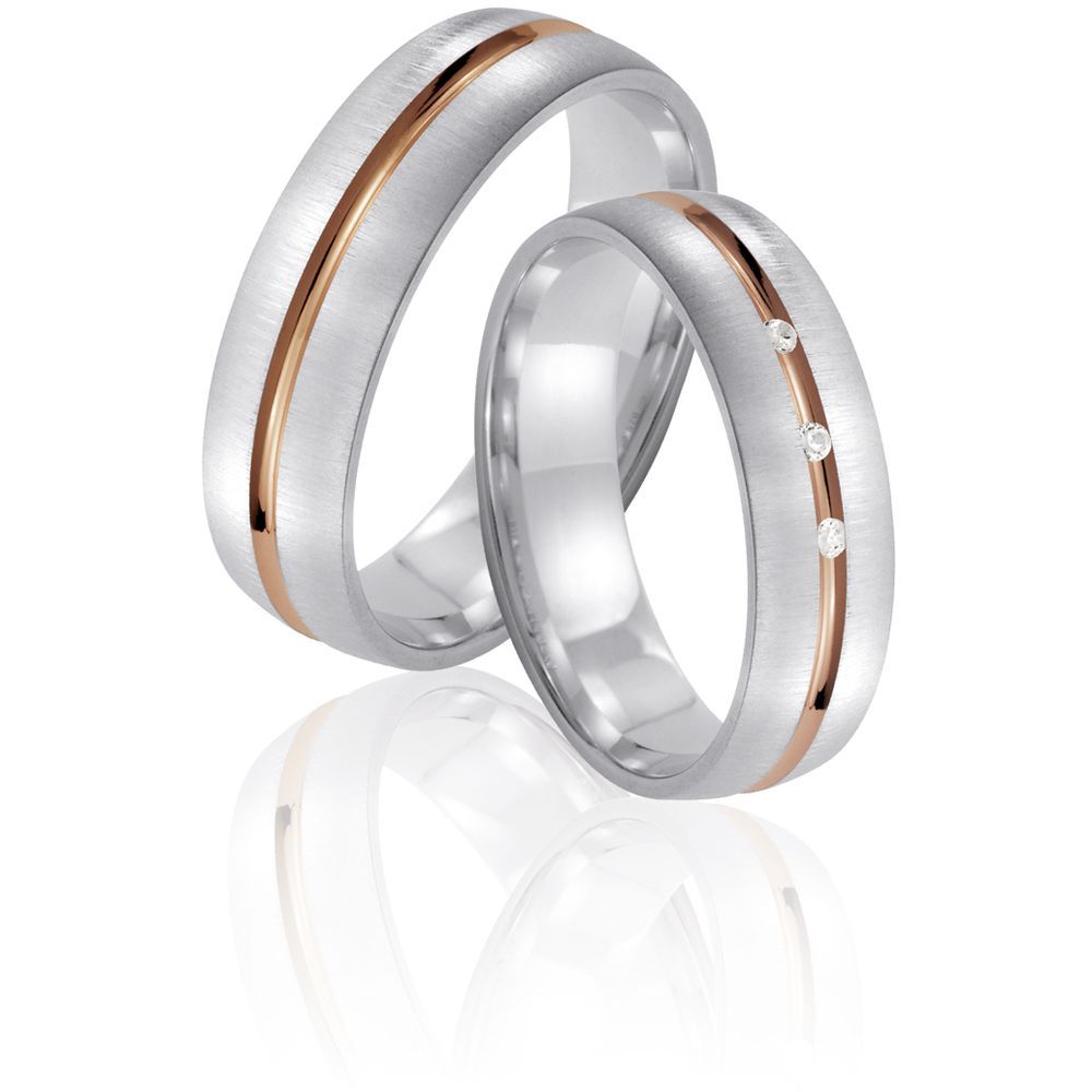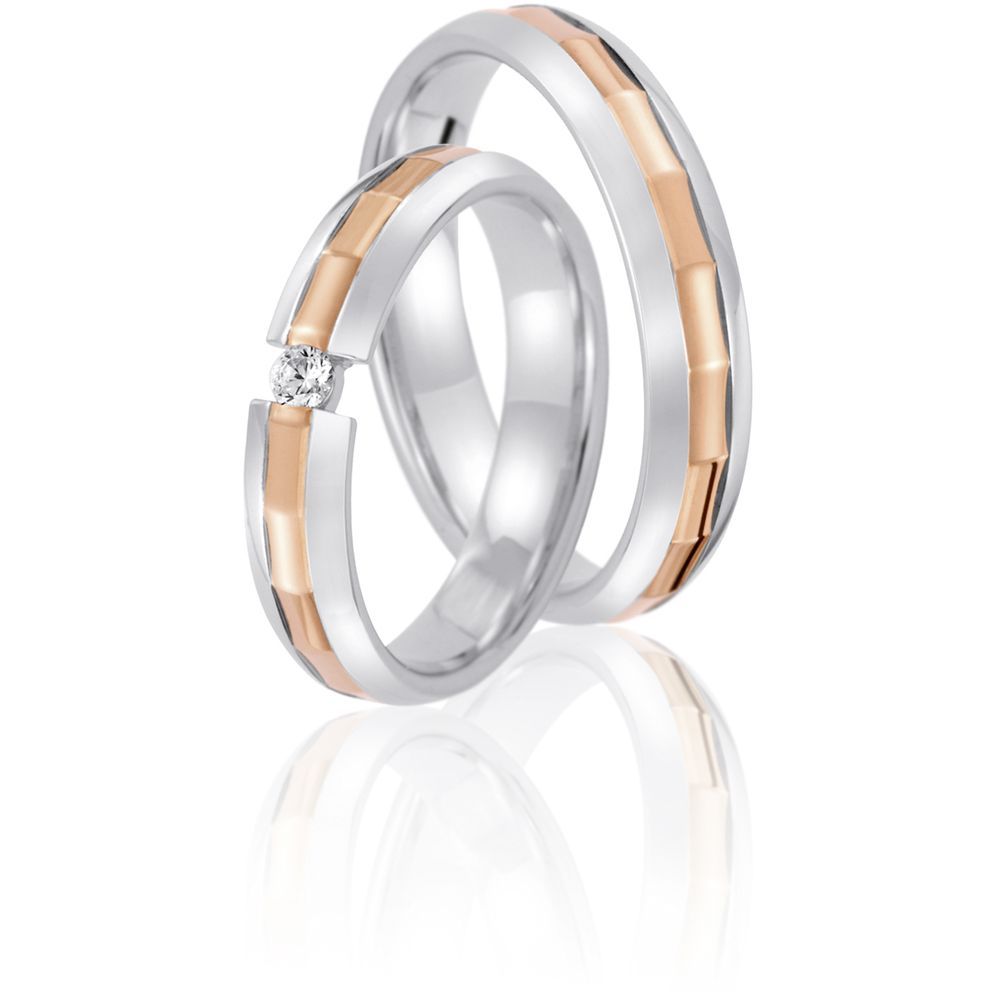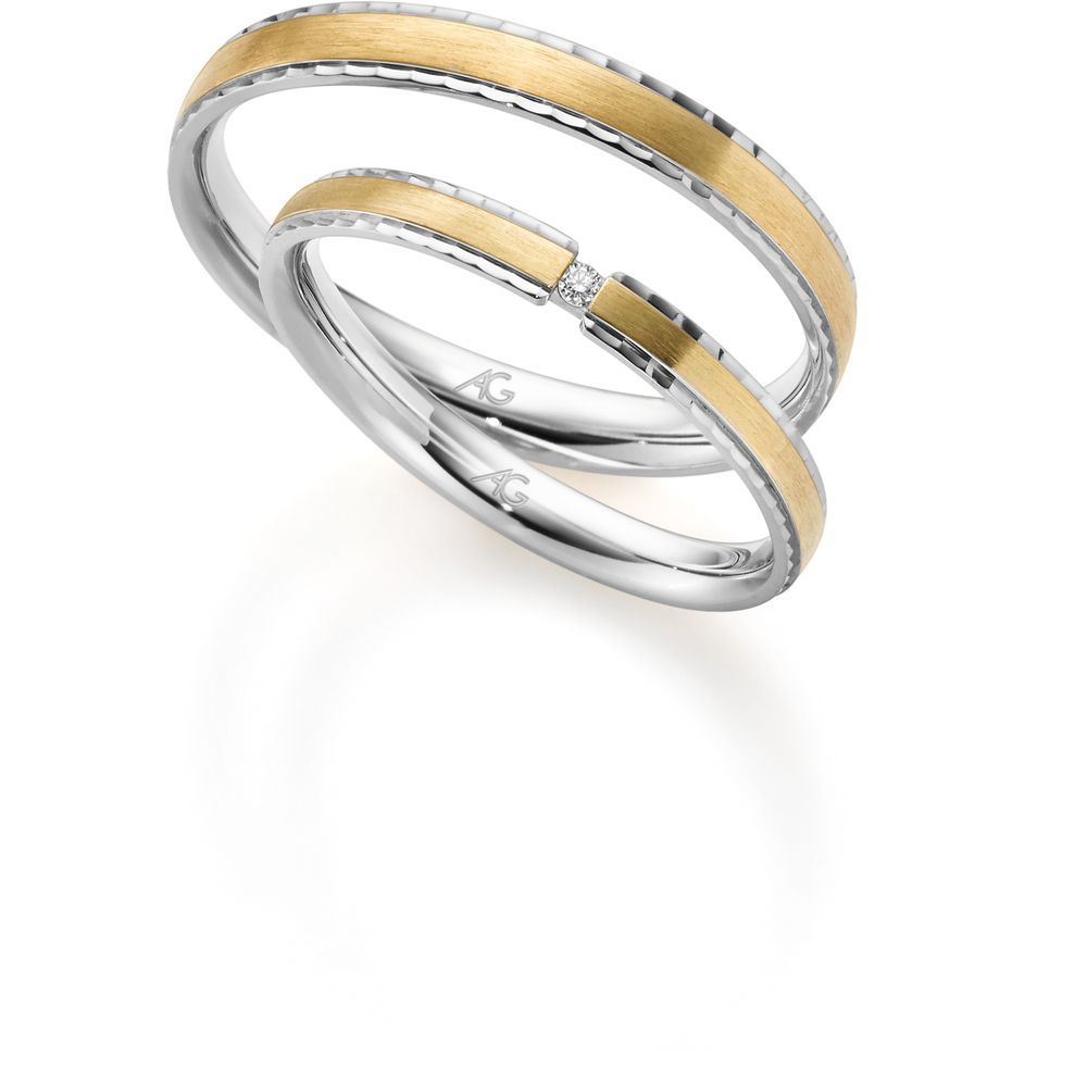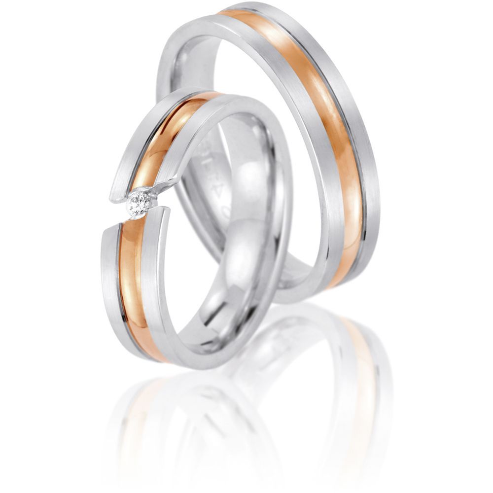 Kombinieren Sie verschiedene Materialien, in verschiedenen Farben, und kreieren Sie einen einzigartigen Trauring. Möglich ist alles was gefällt!