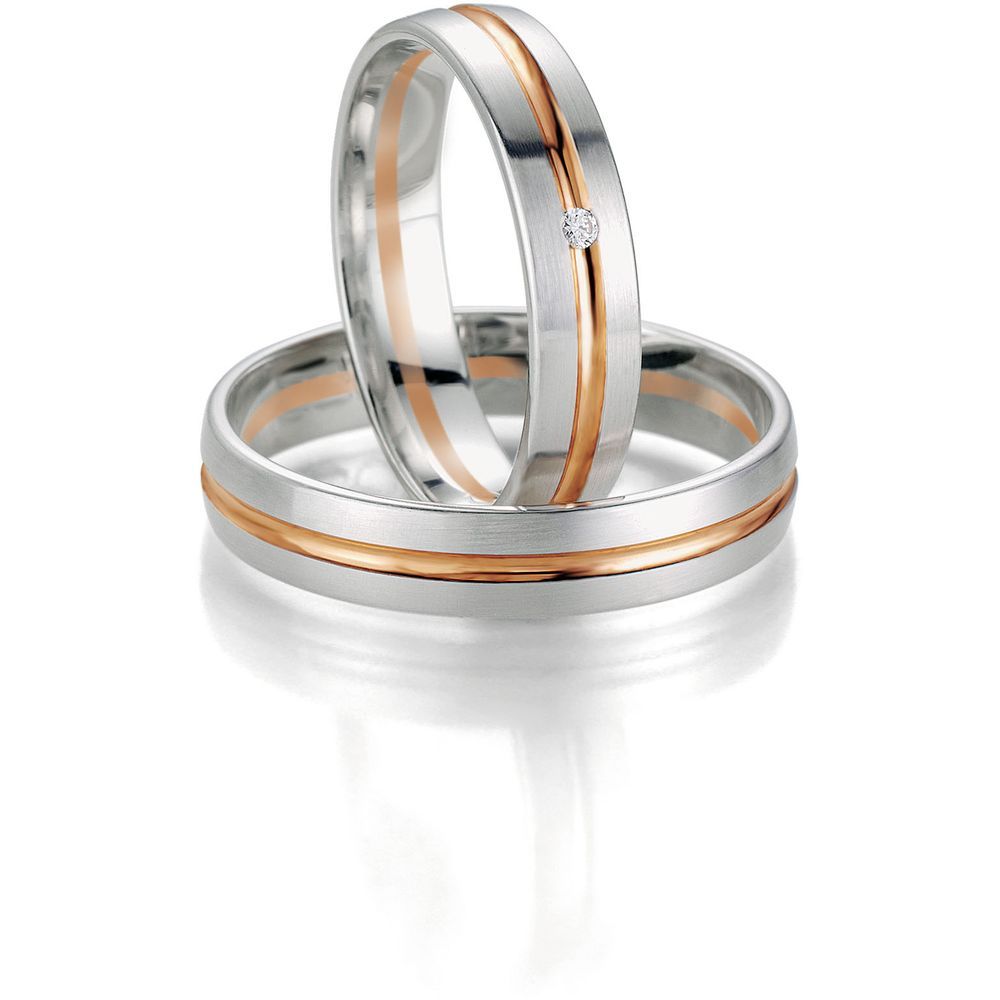 Kombinieren Sie verschiedene Materialien, in verschiedenen Farben, und kreieren Sie einen einzigartigen Trauring. Möglich ist alles was gefällt!