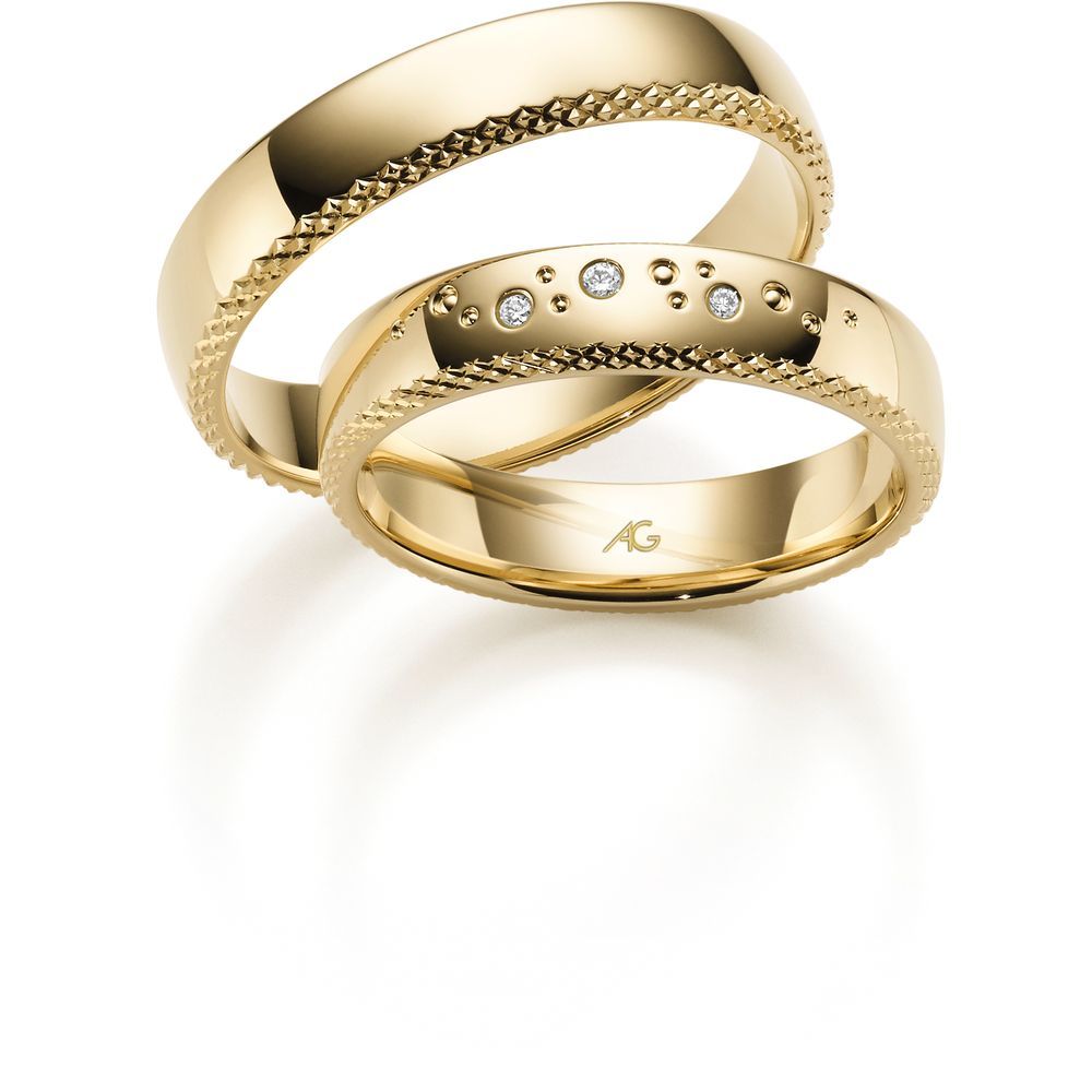 Trauringe mit Perlfugen sind das Highlight des Jahres. Neben dem besonderen körnigen Design setzt die handgemachte Oberflächen Bearbeitung spannende Akzente.