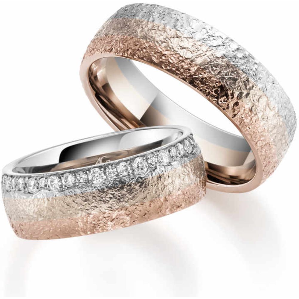 Mondlicht – der fließende Übergang von Gold in drei Facetten: Rotgold, Haselnuss und Graugold. Jeder Blick ergibt eine neue Farbschattierung. Je nach Betrachtungsrichtung wechseln die Ringe geheimnisvoll ihre Farben…