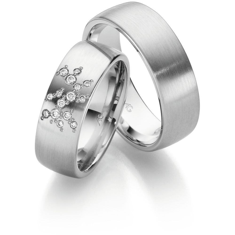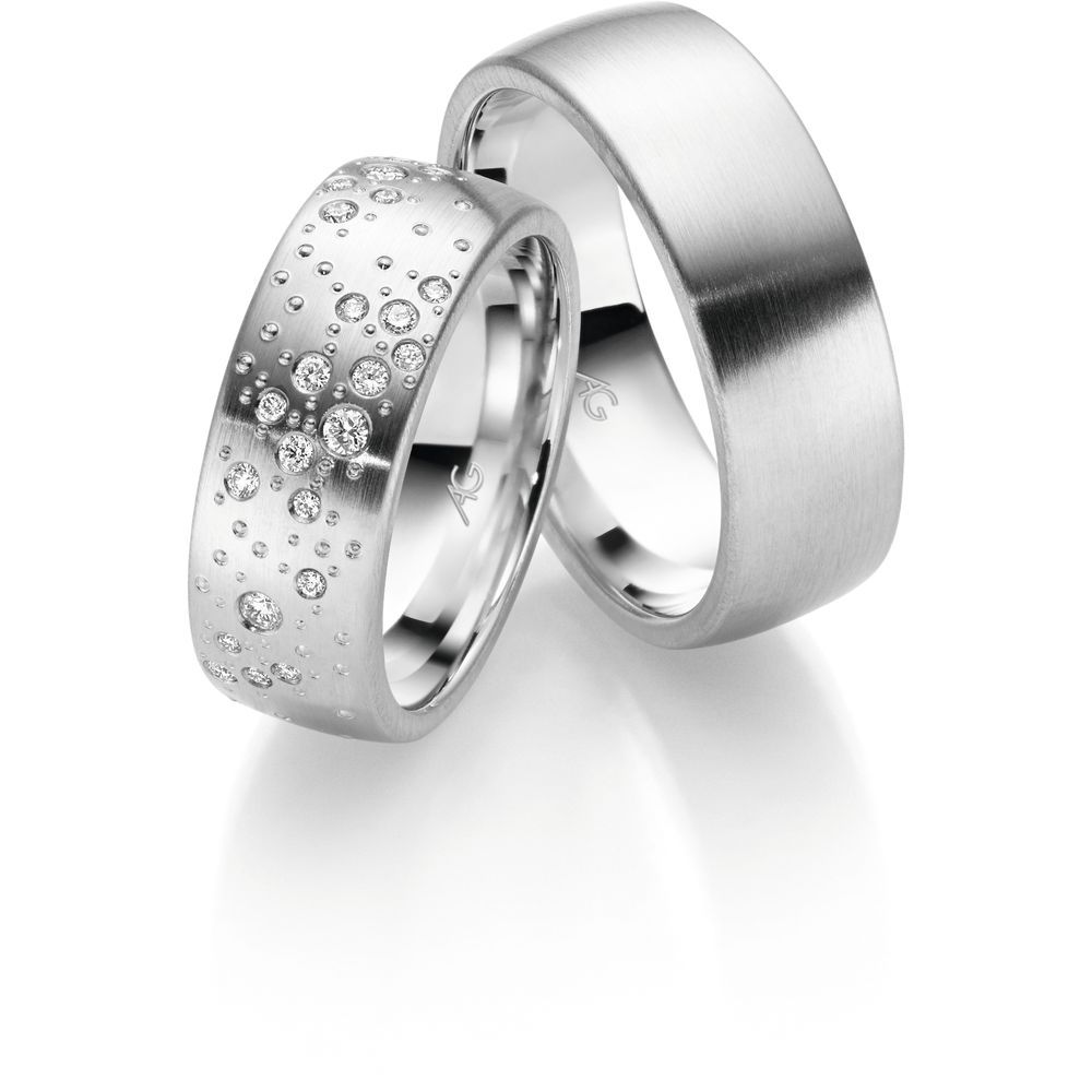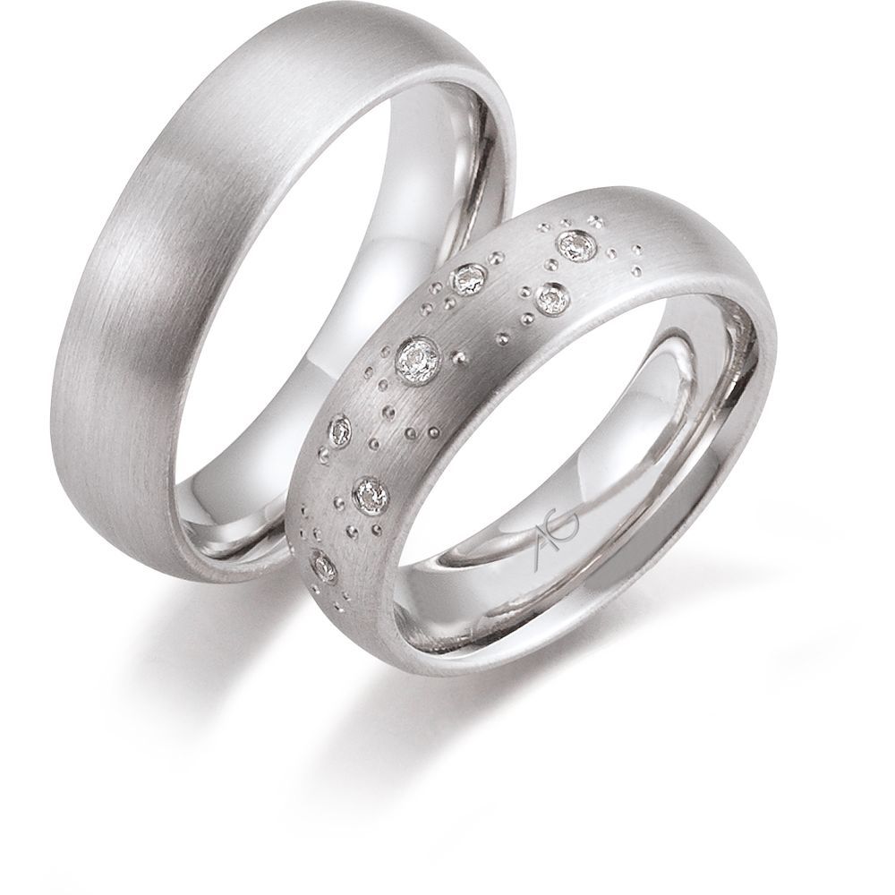 Ein Sternenhimmel ist nicht nur ein Zeichen der absoluten Unendlichkeit, sondern auch ein immer noch nicht ganz erforschtes Mysterium, das eine ganz besondere Faszination auf die Menschen ausübt. Die Nacht zieht sich langsam zurück und der neue Tag kommt. In der Morgenröte sind noch die letzten funkelnden Sterne sichtbar. All dies lässt sich in unsere einzigartigen Sternenhimmel Trauringe hineininterpretieren. Tausende Sterne funkeln- manche davon näher und durch Brillanten ersetzt – manche davon in weiter Ferne.